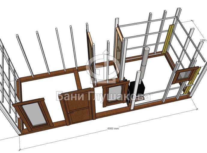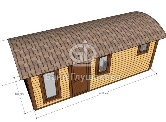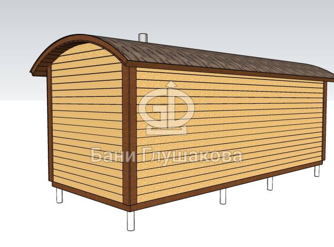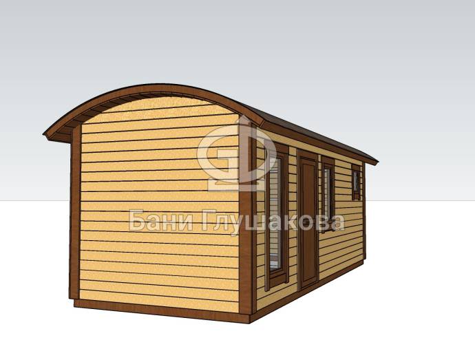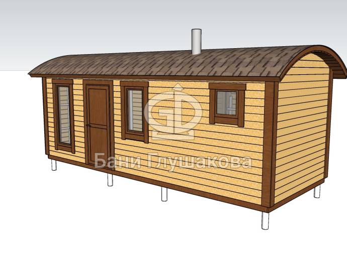 Размер бани может быть любым — это зависит от вашего желания. Мы можем адаптировать проект практически под любой размер, не ограничиваясь перевозными габаритами (стандартные бани «Буханочки» имеют размеры 2,2х6 метров — из-за вместимости грузовика).