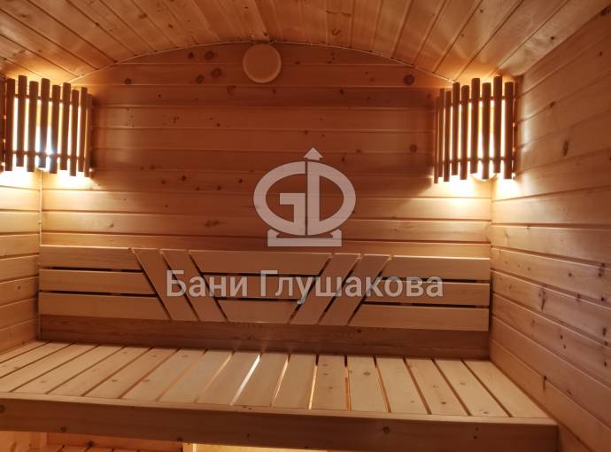 Можно установить светильник потолочный в комнате отдыха, ссылка на все фото тут, помещается в бани бочки увеличенного диаметра, в Буханочки и Бурже, беседки