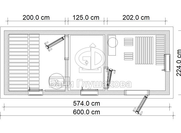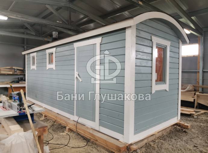 Проект бани «Буханочка» 2,2х5,7м с большой помывочной и душем