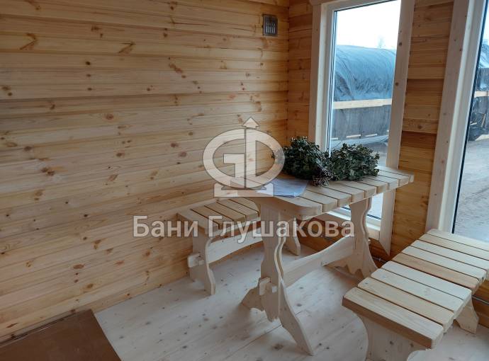Внутри 3 помещения: комната отдыха, душевая и парная.