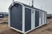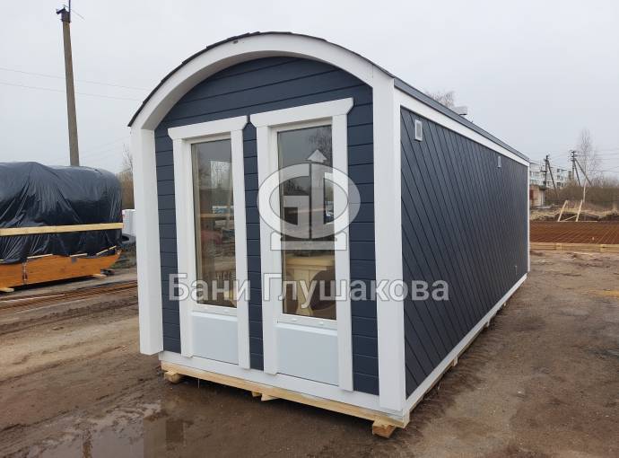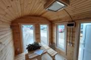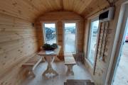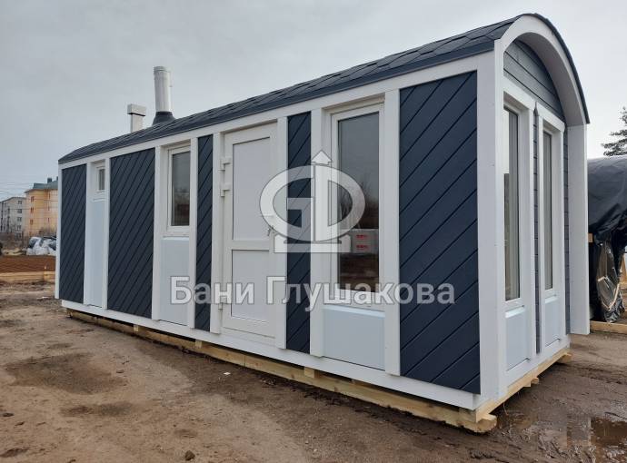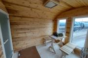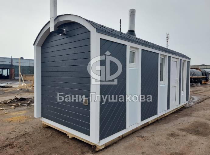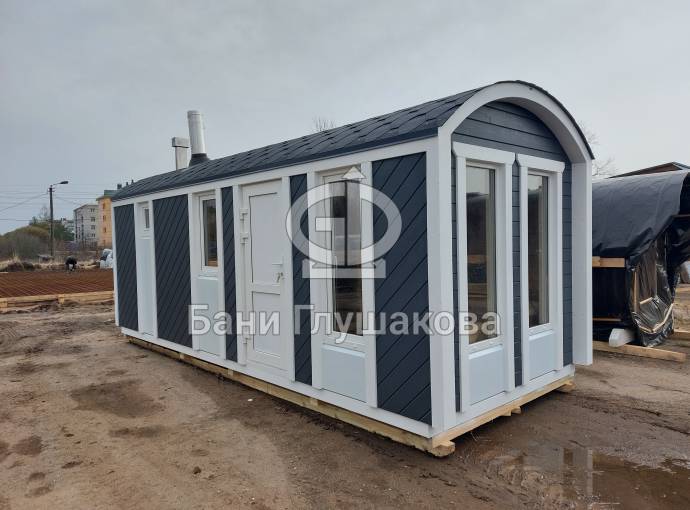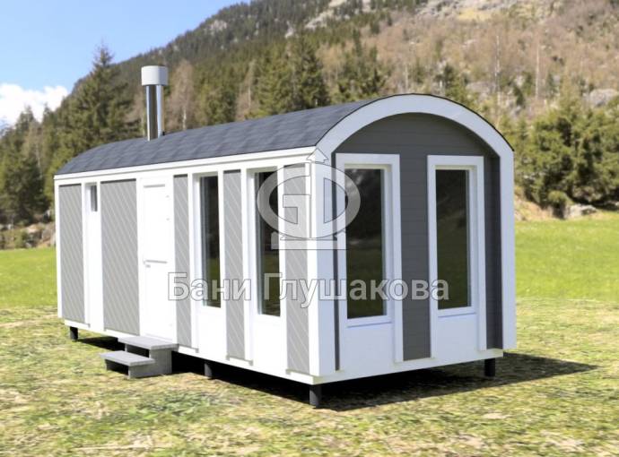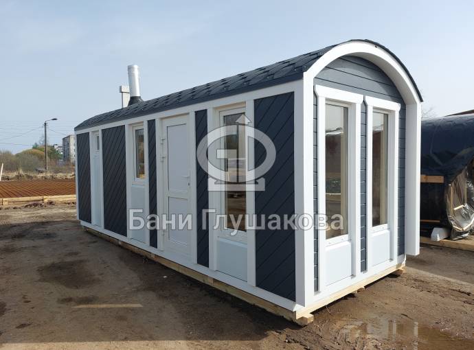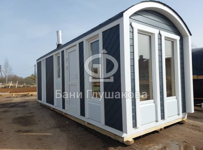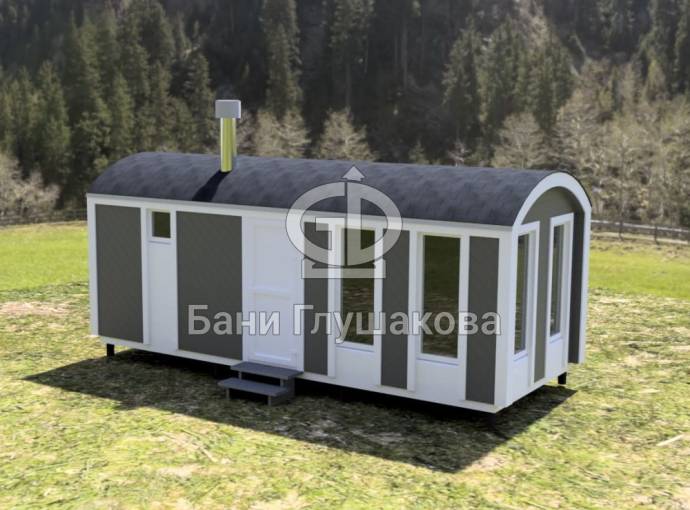 В итоге получилась оригинальная перевозная баня каркасной сборки с узнаваемым дизайном и очень комфортным нутром.