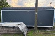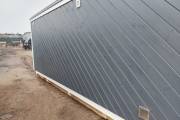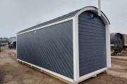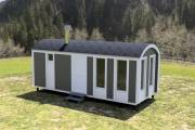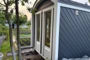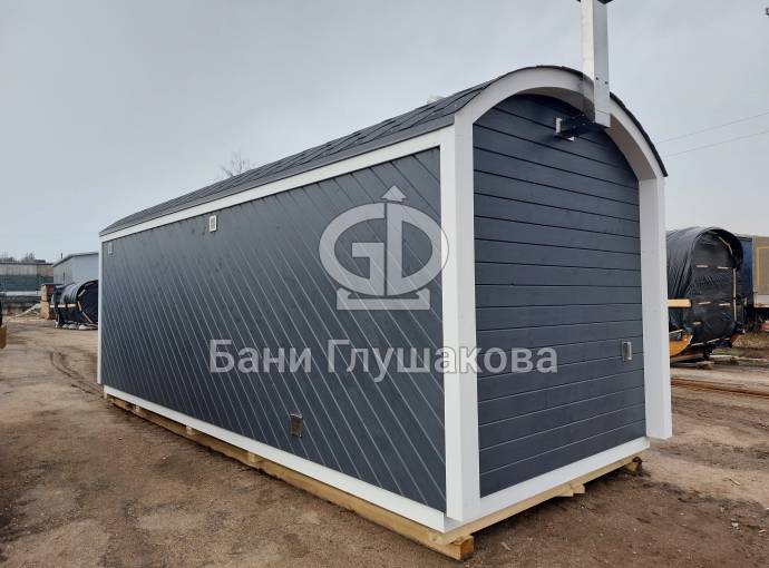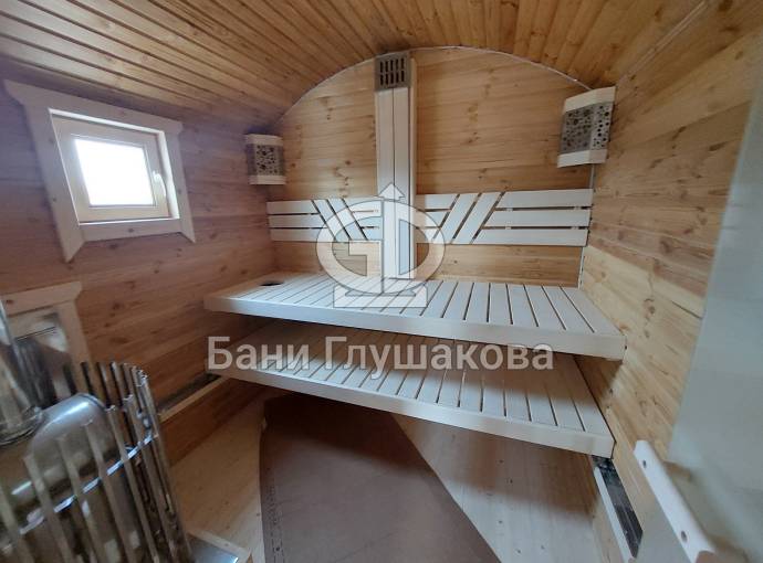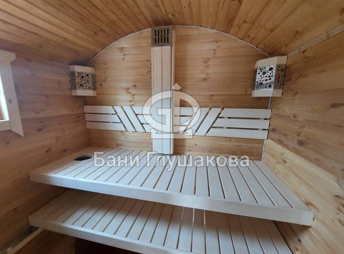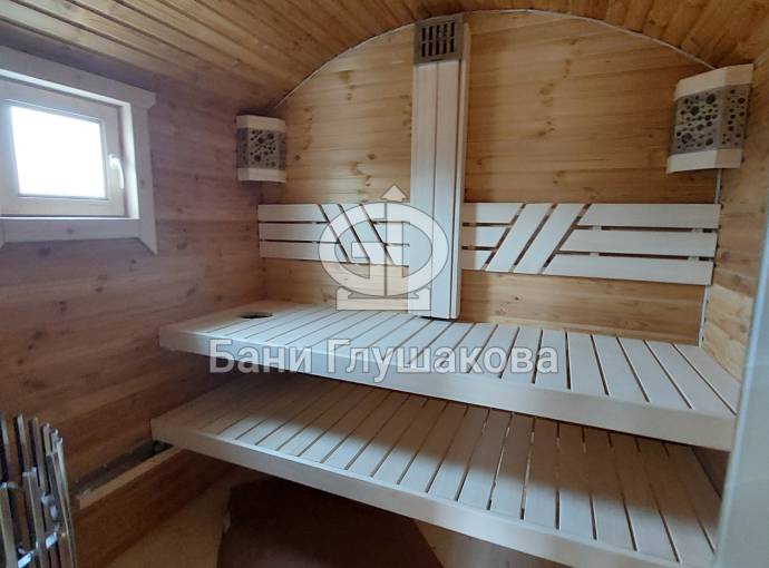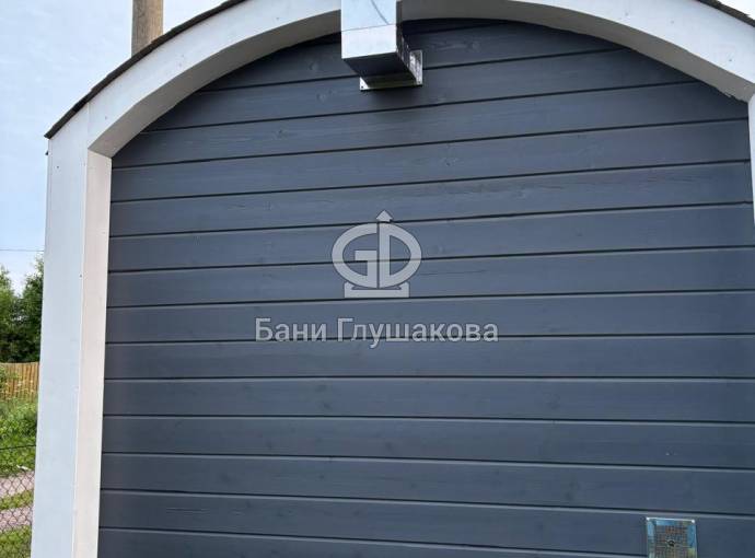 В середине февраля 2024 приступили к сборке экспериментальной бани на стыке двух проектов – «Барнхаус» и «Буханочка». От первого взяли технологию сборки и наружную отделку, от второго – фирменную округлую крышу.