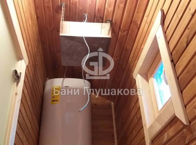 Внутри 4 помещения: комната отдыха, парная, душевое помещение и бойлерная, где размещается оборудование для душа (бойлер, насос). Для работы бойлера не требуется подключение к центральному водопроводу.