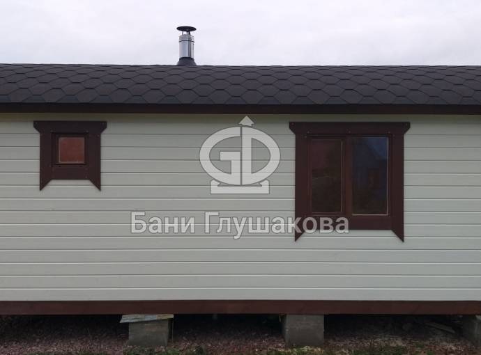 Можно заказать установку окон (только в каркасные варианты) размером 1470х570, открывающиеся если замена окна то +2500р а если дополнительное окно то +5000р, пример такой бани на видео