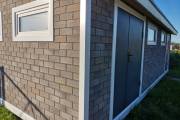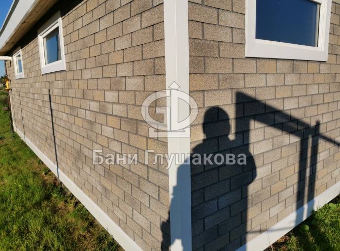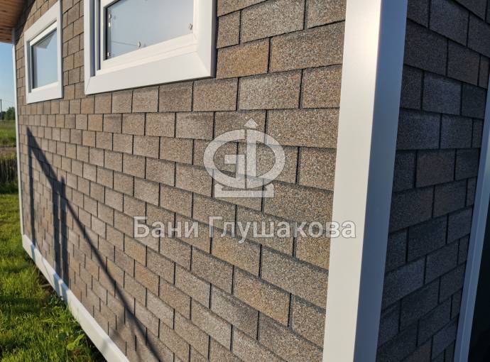 У нас можно заказать строительство хозблока или сарая на основе проекта «Буханочка» с отделкой фасадной плиткой Технониколь Hauberk.
