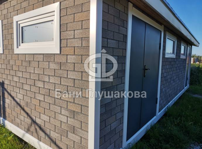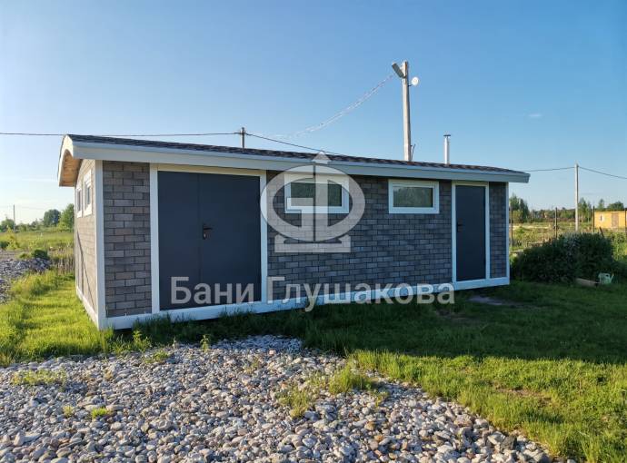 Эта баня была сделана и продана, она выставлена как пример возможного варианта исполнения.