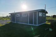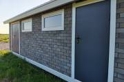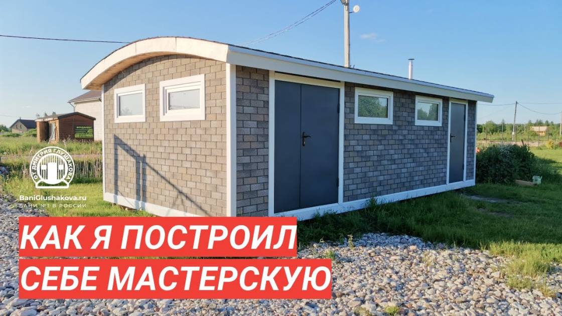 На фото и видео представлен хозблок под мастерскую размером 4 на 8 метров. Внутри 2 помещения по 16 квадратных метров.