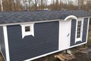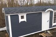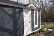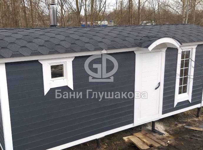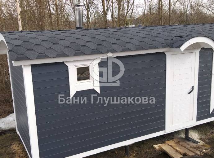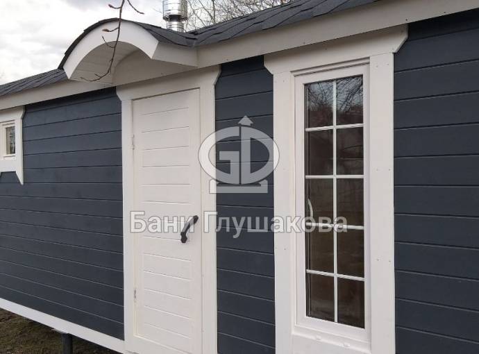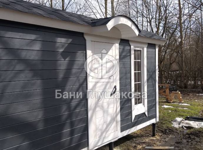 Для бань «Буханочка» добавили новую дополнительную опцию. Теперь можно заказать вот такой округлый козырёк. Он хорошо вписывается в общую округлую концепцию дизайна бани.