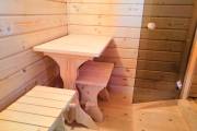 В помывочном помещении для удобства можно сделать откидную скамеечку, фото и видео на странице по ссылке
