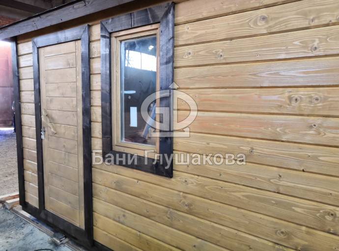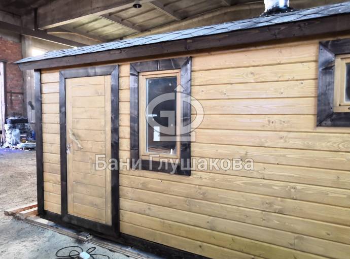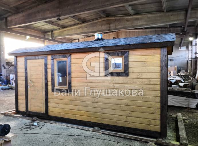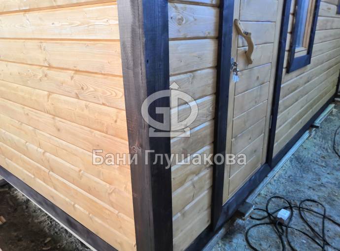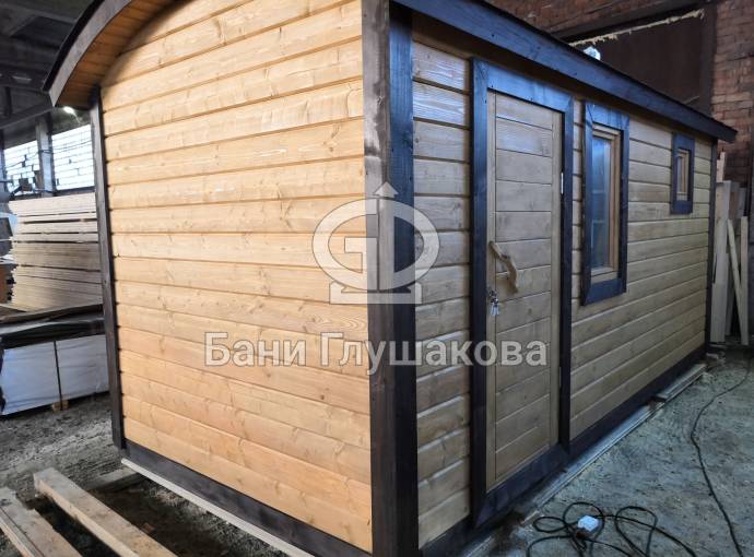 Мини баня «Буханочка» 2,2х4,8м с душем из клееного бруса