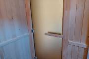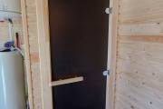 Это типовая готовая баня на 3 помещения: комната отдыха, парная, душ. Собрана по каркасной технологии, обшита сухой доской внахлёст — наша фирменная «ёлочка» с креплением впотай.