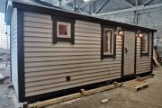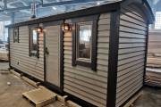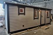 Это шестиметровая каркасная «Буханочка» с фирменной отделкой внахлёст. Такие бани будут стоять ооочень долго, не теряя своей красоты. В основе лежит хорошо просушенный брус. Обшивается высушенной доской, которую не поведёт. Изнутри отделка бессучковой вагонкой АВ класса.