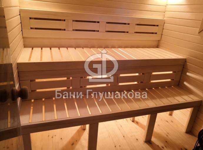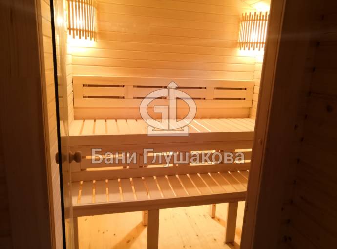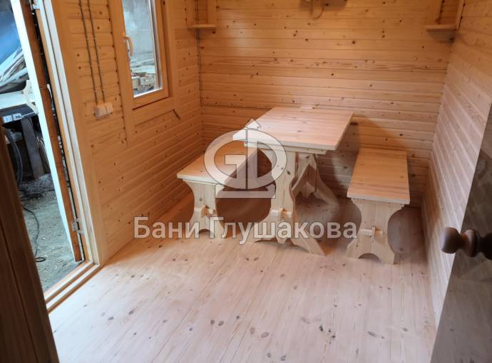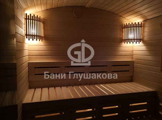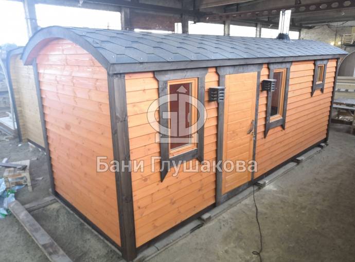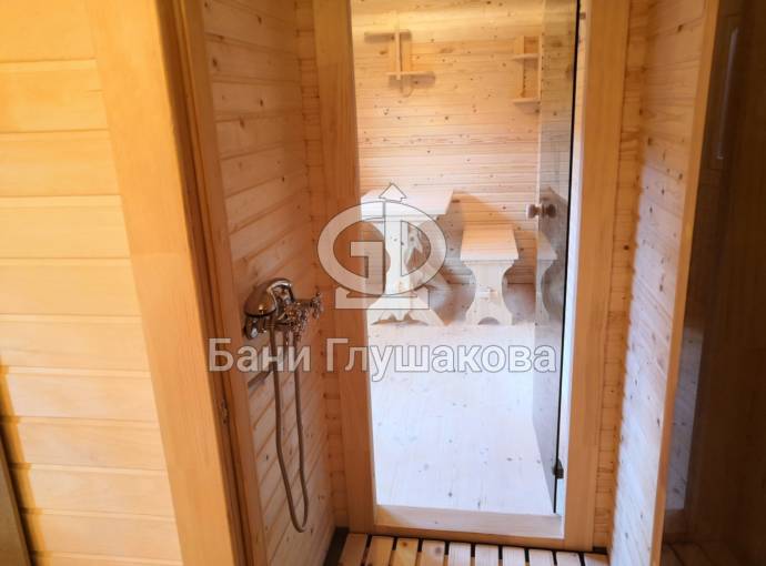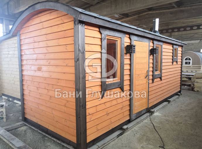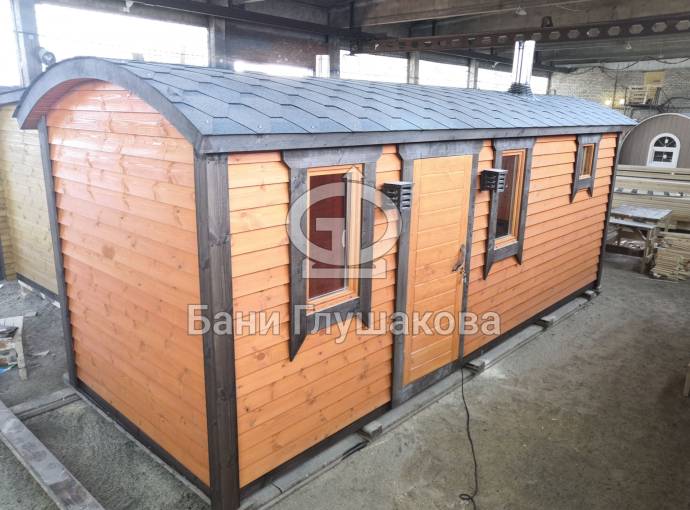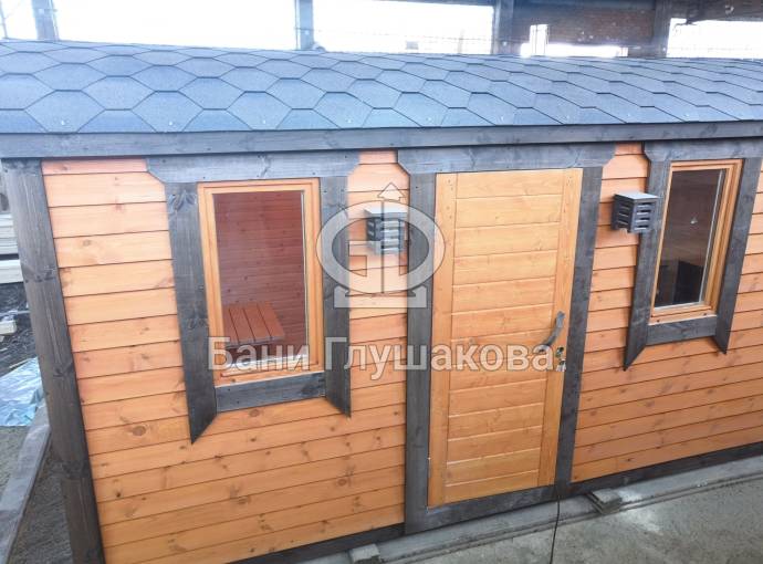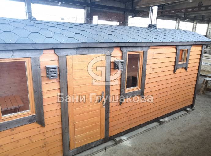 Эта баня была сделана и продана, она выставлена как пример возможного варианта исполнения.
