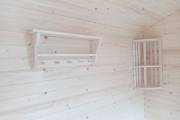 Также мы не забыли о разных мелочах, которые создают уют: нижняя подсветка полков, уличное освещение, красивая спинка в парной, полочки и вешалки.