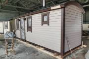 Баня на производстве, парная справа, цвет тиккурила как на фото, обводка будет темная. печь будет сахара 16 , душевая комната и душевое оборудование. кровля коричневая, скоро будет готова, следите за фото.
