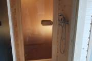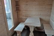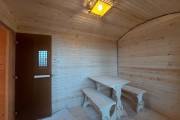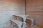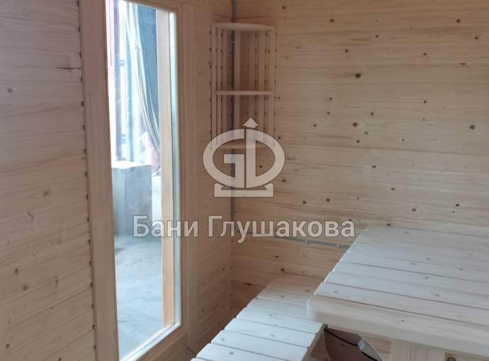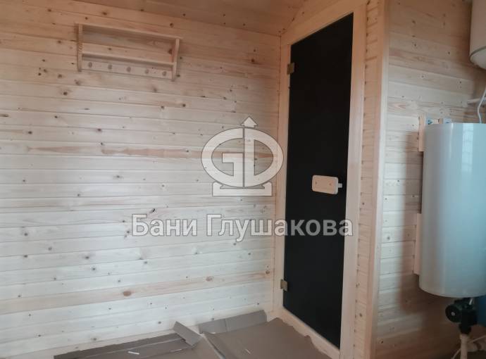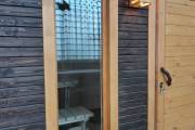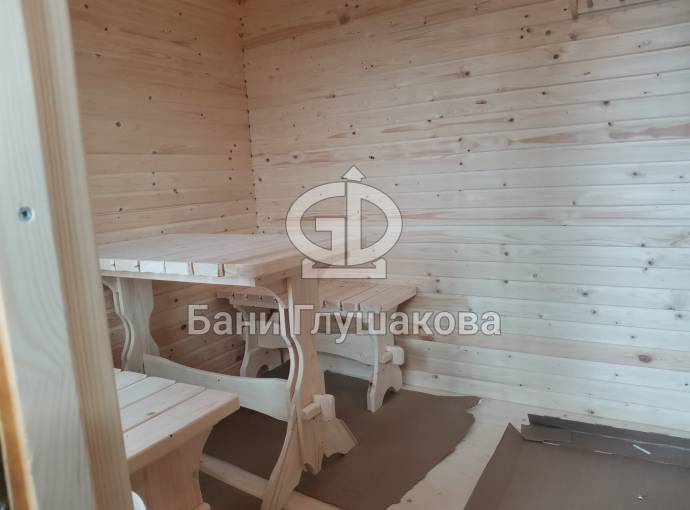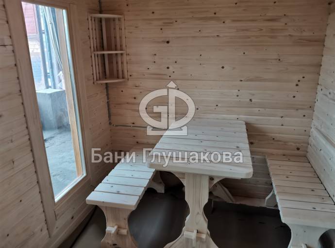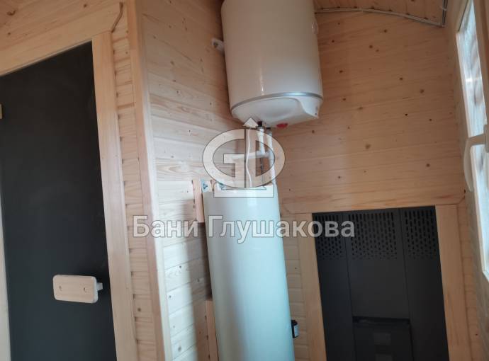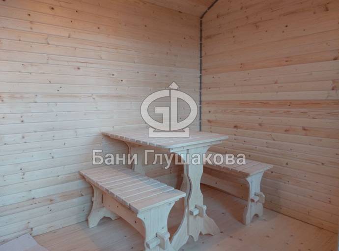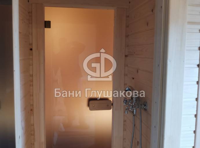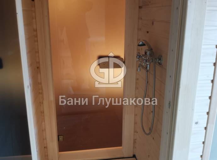 Внутри 3 отделения: парная, комната отдыха и душевая. Баня оснащена современной автономной душевой системой.
