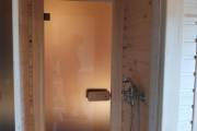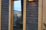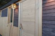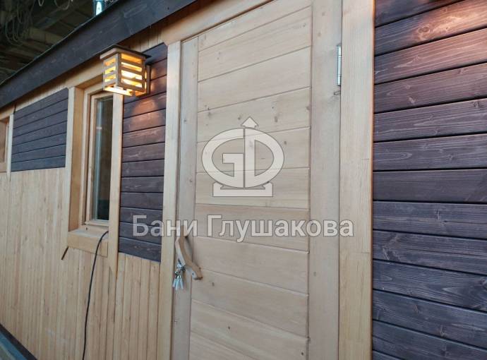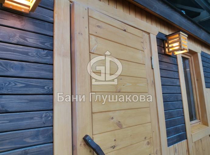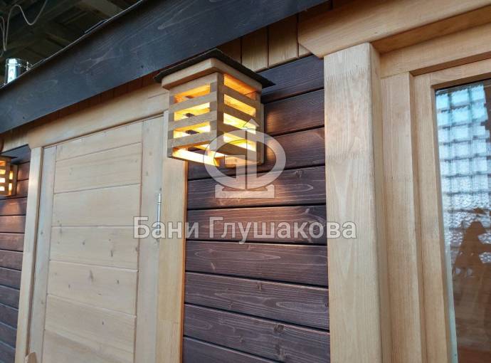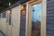 Можно установить один или более светильник у входной двери снаружи, подробнее по ссылке, в комплект входит покраска его в цвет окантовки бани, подключение на отдельный выключатель, светодиодная лампа. Стоимость 1700 рублей за штуку
