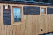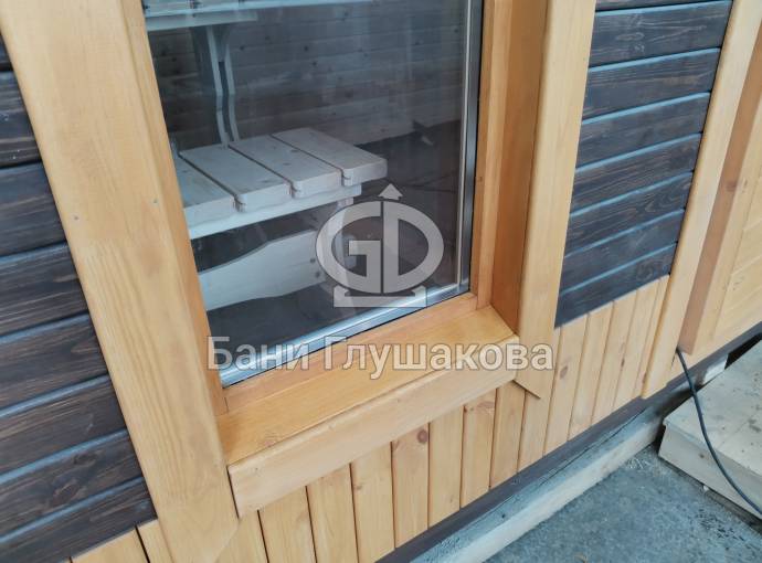 Можно заказать установку окон (только в каркасные варианты) размером 1470х570, открывающиеся если замена окна то +2500р а если дополнительное окно то +5000р, пример такой бани на видео