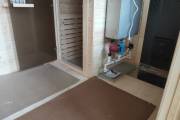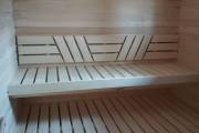 В парной поставлены двухуровневые пологи — нижний удлинён (в образовавшейся нише можно хранить тазики, веники, ковши). Ножек нет — это красиво и очень удобно: оцЕните при уборке парной.