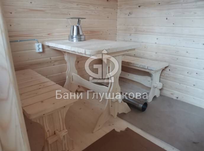 Внутри есть комната отдыха, парная и душ. Душевая система полностью автономна и может использоваться отдельно от парной. Наличие водопровода необязательно!