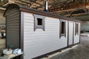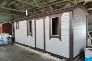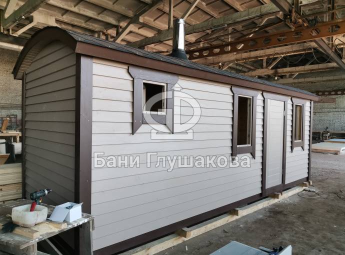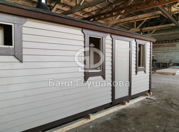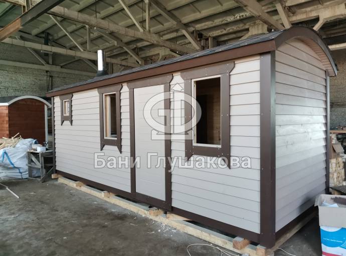 В начале июля 2020 баня будет готова (ориентировочно 2-3 июля), и вы ее можете заказать сразу к себе на участок, минуя выставочную площадку. Пока она находится в сборочном цеху Великого Новгорода, но скоро будет упакована и погружена на транспорт. Торопитесь.