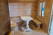 Внутри 3 отделения: комната отдыха, душевая и парная. Установлена проверенная временем автономная душевая система (бойлер, бак, насос, лейка, смеситель).