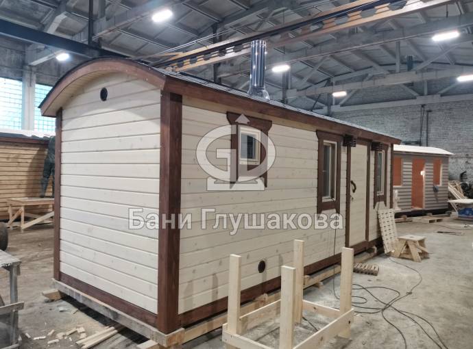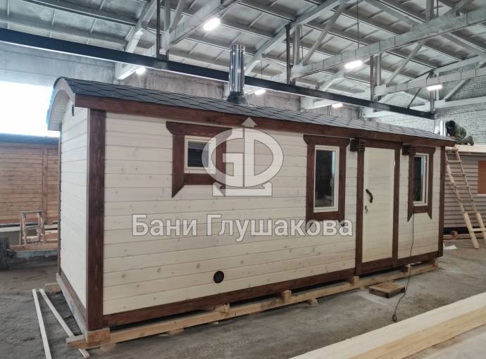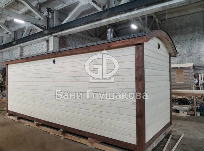 Есть в наличии замечательная перевозная баня «Буханочка» максимального размера — 2,2 на 6 метров. Построена из лучшего материала в нашем распоряжении — профилированного клееного бруса, изготовленного из кедровой древесины. Баня ароматная! И мы не преувеличиваем.
