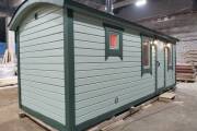 На данный момент баня находится на производстве в Великом Новгороде и скоро ее переместят на выставочную площадку в Москву или СПБ, но при этом цена ее немного подрастет. Поэтому на данный момент доставку считаем из Великого Новгорода.