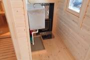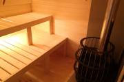 На выставочной площадке в Балашихе, ул. Орджоникидзе, 23 (Москва) доступна к осмотру новенькая перевозная баня «Буханочка» в супер комплектации: полностью оборудованная парная с подсветкой, декоративной спинкой полога и подарком в виде панно из можжевельника от Дмитрия Глушакова; душевая система, которая работает в автономном режиме; выносная топка в комнате отдыха, комплект добротной мебели для бани и красивая люстра.