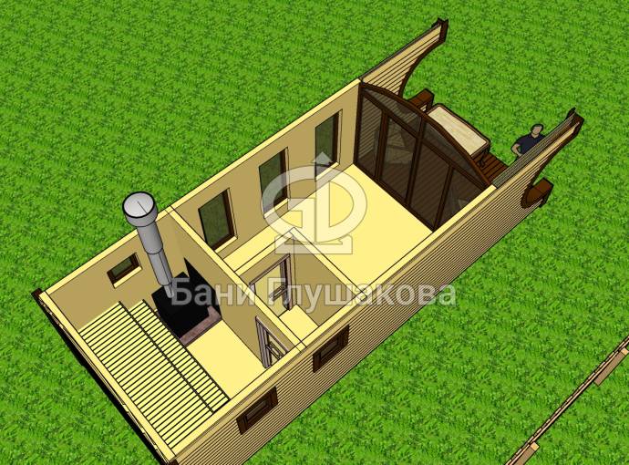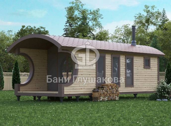 Баня «Буханочка» 3х8м с панорамным окном