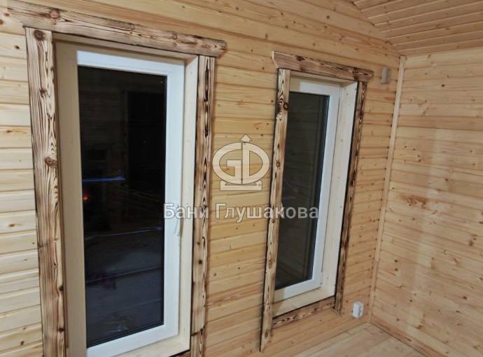 Можно заказать установку окон (только в каркасные варианты) размером 1470х570, открывающиеся если замена окна то +2500р а если дополнительное окно то +5000р, пример такой бани на видео