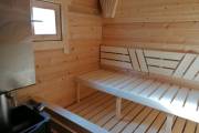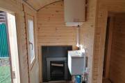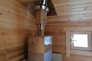 Конкретно эта «Буханочка» имеет размер 5,7х2,2, это 12,5 квадратных метров. Это размер среднестатистической бани на даче. Небольшой объем прогревается быстро — за 2 часа до хороших 80 градусов. Тепло сохранится и на следующий день.