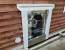 Если топка через стену то можно сделать красивые наличники из брашированной доски с полочкой на верху,