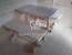 Массивная мебель нашего производства, основа из фанеры, верх из массива, стол и две скамейки, есть табуреты но их нужно оговаривать отдельно.