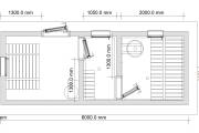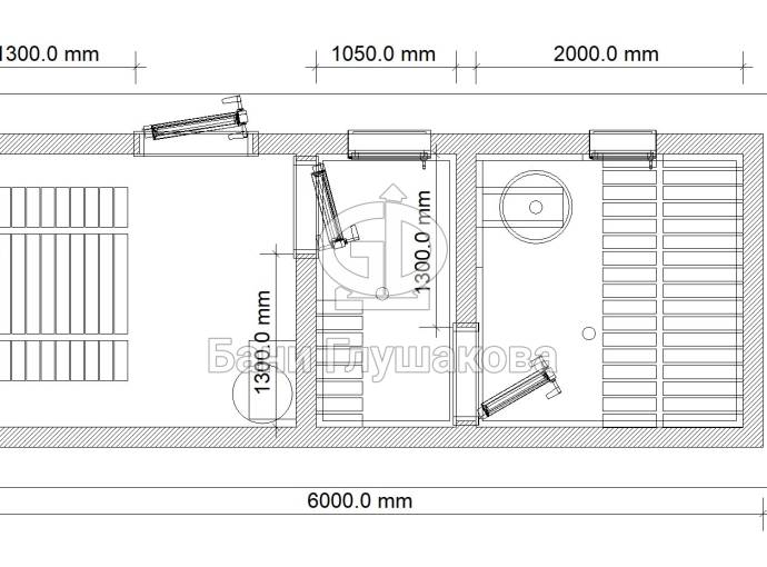 Размеры на плане — это размеры по брусу. Размеры парной и душевой комнаты будут меньше на 60 мм из-за того, что будет контр-обрешётка по стенам и обшивка вагонкой изнутри — ну то есть несколько сантиметров площади неизбежно «съедятся».