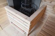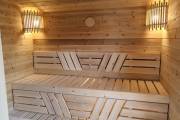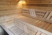 Особенно достойна вашего внимания парная, обшитая вагонкой из кедра. Эта древесина обладает низкой теплопроводностью, поэтому тепло в сауне будет сохраняться дольше. Красивый красноватый оттенок со временем потемнеет и будет выглядеть еще благороднее. А ещё тут потрясающе свежий кедровый запах!