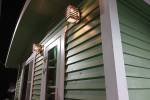 Можно установить один или более светильник у входной двери снаружи, подробнее по ссылке, в комплект входит покраска его в цвет окантовки бани, подключение на отдельный выключатель, светодиодная лампа. Стоимость 1700 рублей за штуку