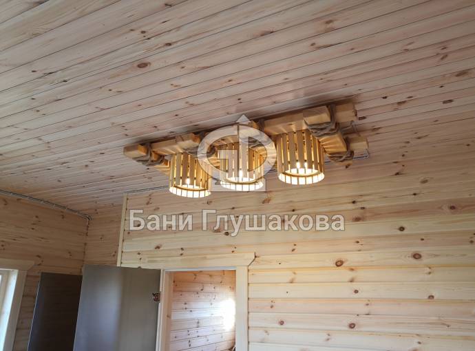 Можно установить светильник потолочный в комнате отдыха, ссылка на все фото тут, помещается в бани бочки увеличенного диаметра, в Буханочки и Бурже, беседки
