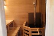 Этот проект — самая большая по размеру каркасная баня «Бурже», которую мы когда-либо строили. Общая площадь составляет почти 30 квадратных метров. Внутри: