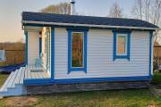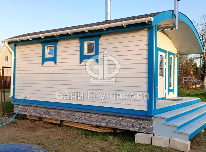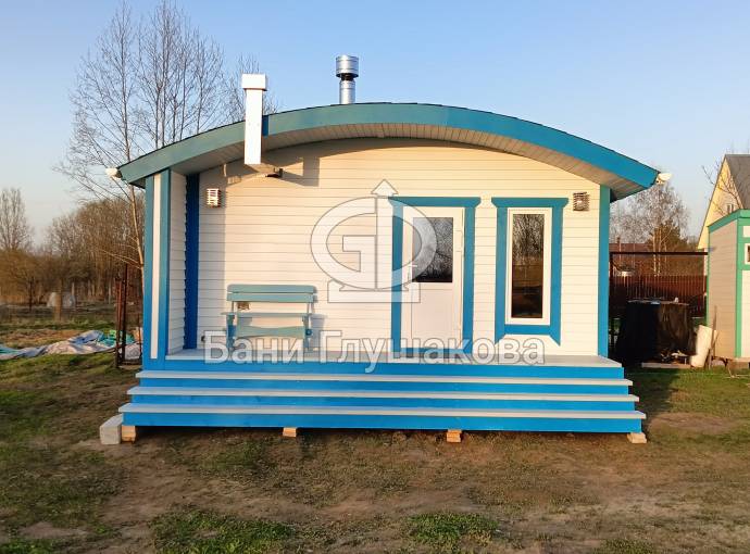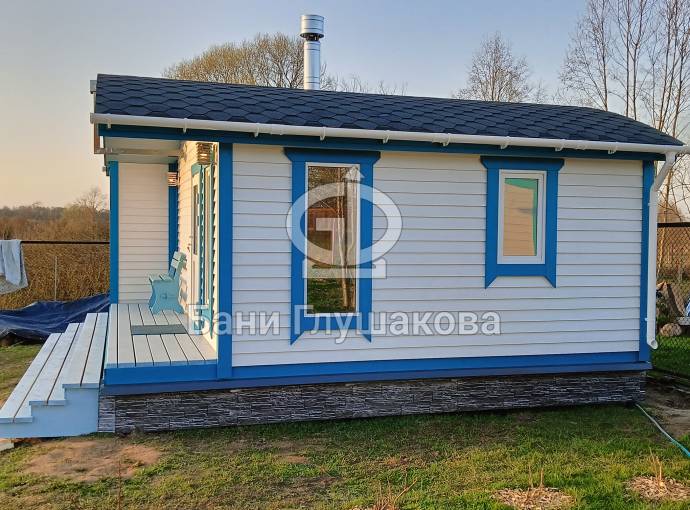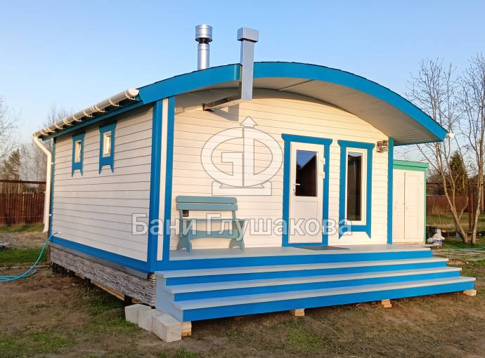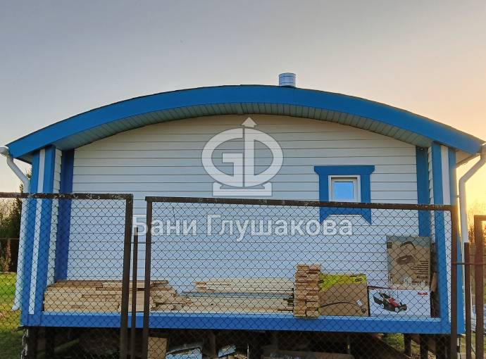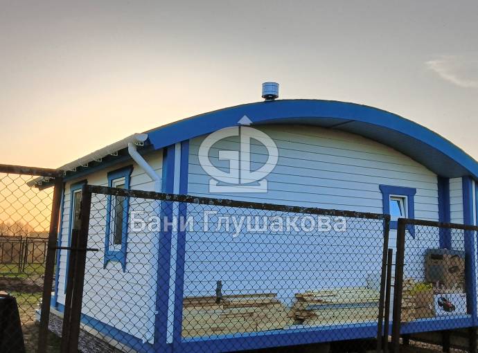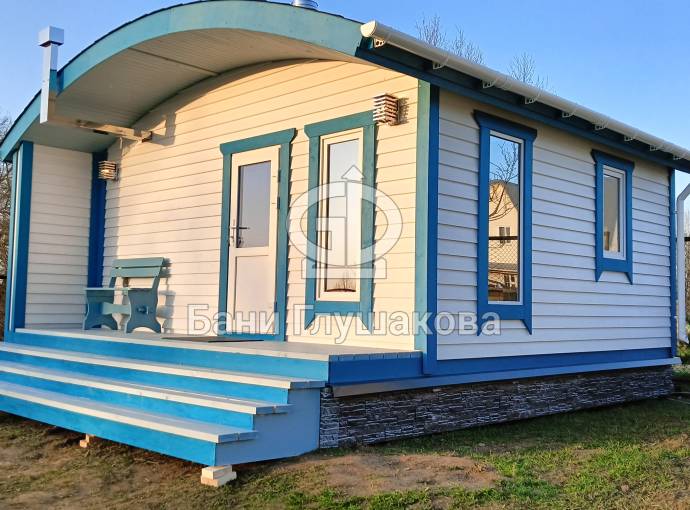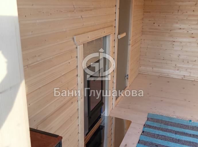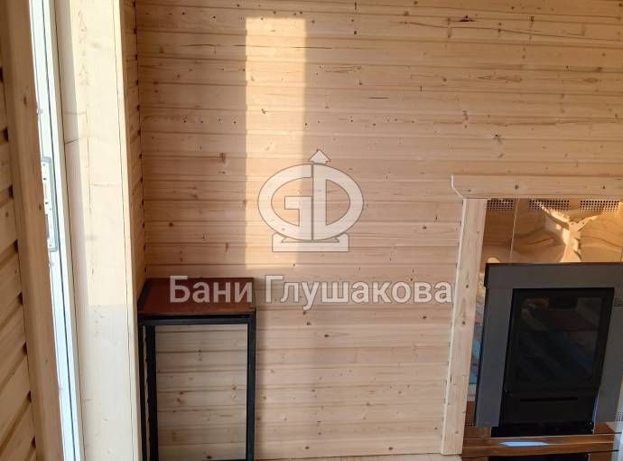 • Дополнительное помещение: Позади бани, под общей крышей, предусмотрен аккуратный дровяник для удобного хранения топлива.