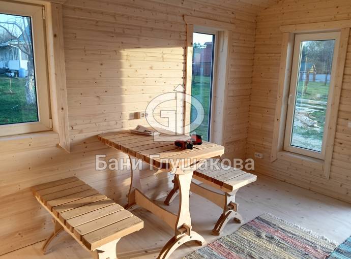 • Просторная комната отдыха: Идеальна для семейных посиделок после парения.