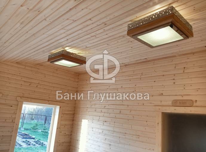 Можно установить светильник потолочный в комнате отдыха, ссылка на все фото тут, помещается в бани бочки увеличенного диаметра, в Буханочки и Бурже, беседки