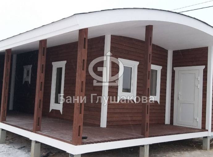 Такую баню можно будет построить по каркасной технологии или из сухого/клееного бруса. Полная комплектация оговаривается индивидуально с каждым Клиентом. Пожалуйста, обращайтесь perevoznyebani@yandex.ru.