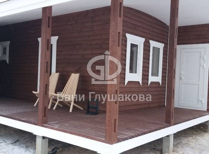 Баня «Бурже» 7х8 с угловой террасой