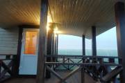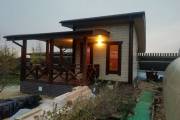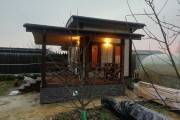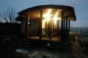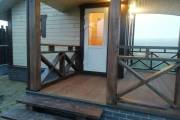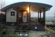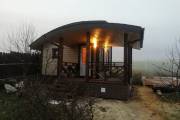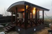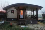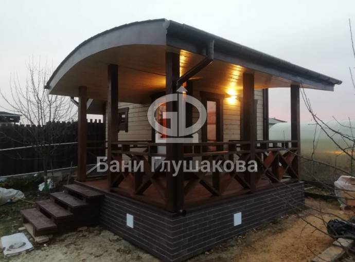 Самое главное отличие — терраса под отдельной фирменной округлой крышей. По сути это полноценная беседка, пристроенная к бане. Можно поставить садовую мебель, оборудовать гриль — будет отличное место для летнего отдыха.