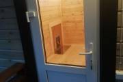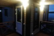 Можно установить один или более светильник у входной двери снаружи, подробнее по ссылке, в комплект входит покраска его в цвет окантовки бани, подключение на отдельный выключатель, светодиодная лампа. Стоимость 1700 рублей за штуку
