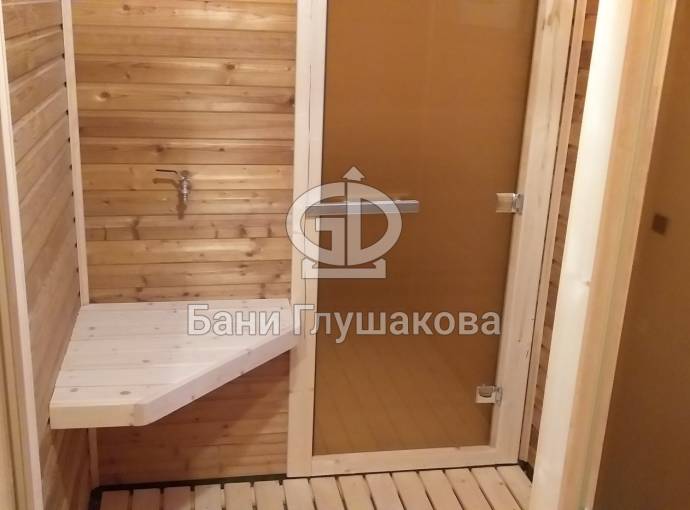 В помывочном помещении для удобства можно сделать откидную скамеечку, фото и видео на странице по ссылке