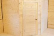 Наиболее хороший и долговечный вариант двери, включает уже полноценный замок с ручкой, потребуется доплата, точнее стоимость можно у знать у менеджера. Ссылка на фото и видео двери