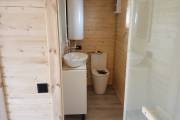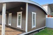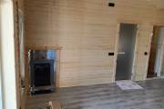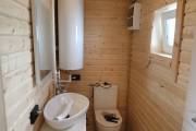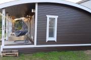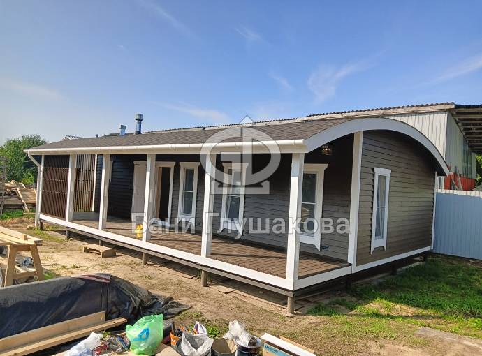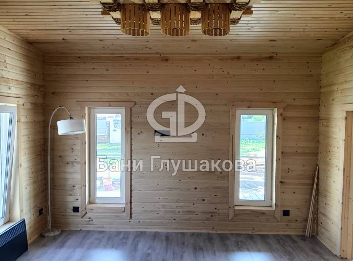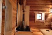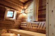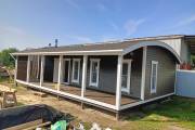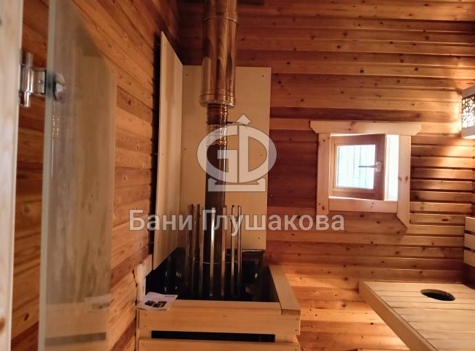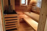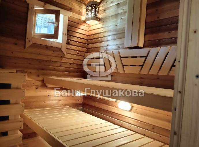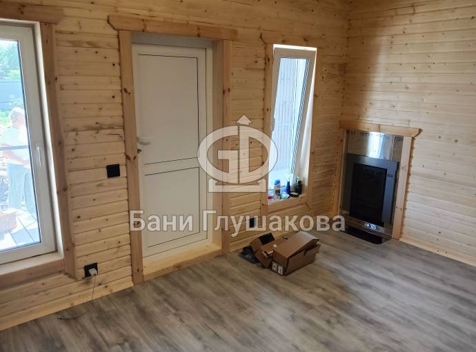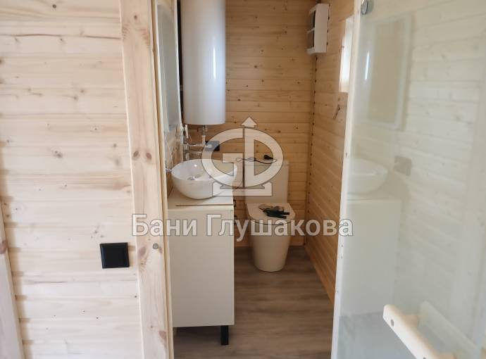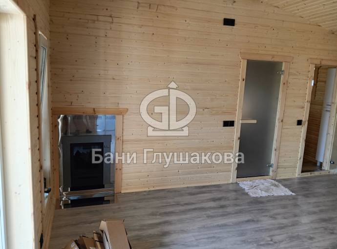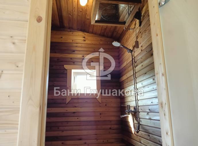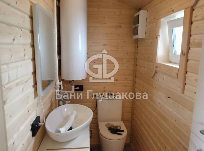 Баня изготовлена по каркасной технологии, однако может быть построена и из бруса.