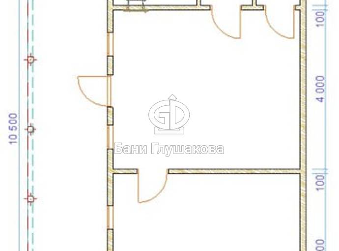 Планировка разделена на гостиную, спальню, душ, сауну и санузел. При необходимости можно переработать план бани под ваши пожелания.